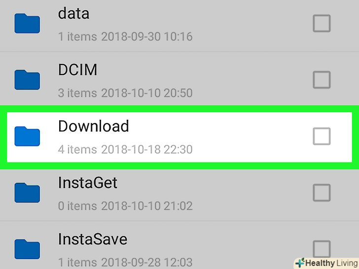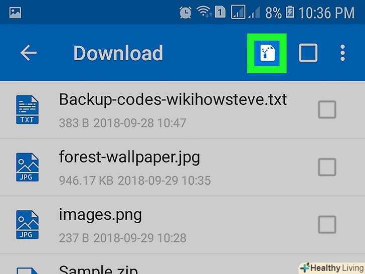 Скачайте zip-файл.якщо архіву немає на пристрої, скачайте його-для цього торкніться відповідного посилання в браузері. ZIP-файл завантажиться в папку "Download" на пристрої.- Якщо ZIP-файл знаходиться в Google Диску, Натисніть і утримуйте архів, а потім в меню натисніть "Завантажити".