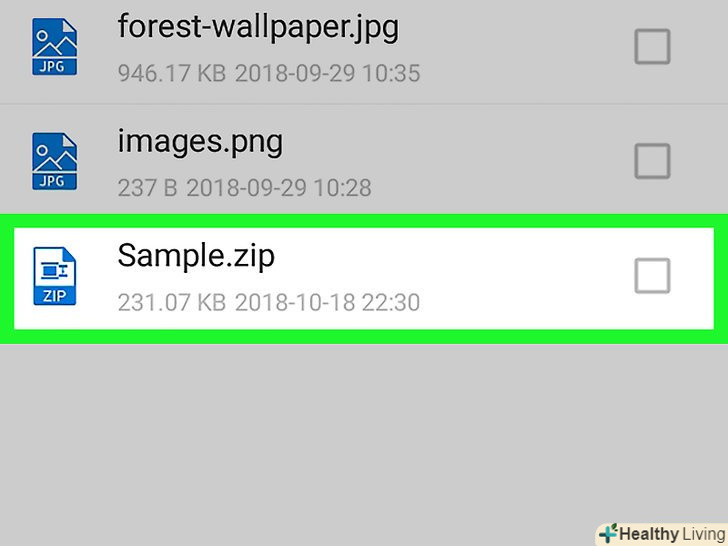 Виберіть ZIP-файл. знайдіть архів і торкніться його (встановіть прапорець праворуч від нього).