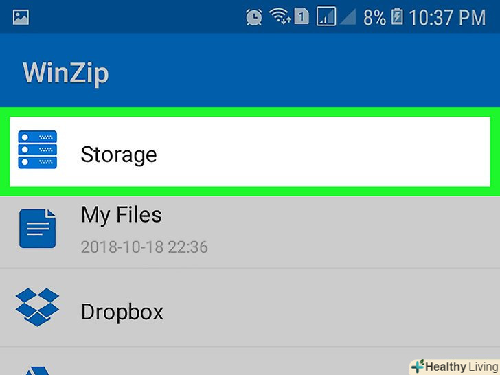 Запустіть WinZip.натисніть «Відкрити " на сторінці WinZip в Play Маркеті або натисніть значок цього додатка на панелі додатків.