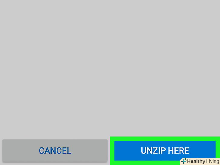 НатиснітьUnzip here (витягти сюди). це опція внизу екрану. Вміст архіву буде вилучено в зазначену папку.