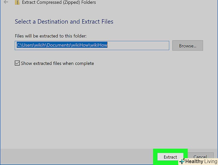 НатиснітьВитягти. це опція внизу вікна. Файли з Zip-архіву будуть витягнуті в зазначену папку, яка відкриється, коли процес завершиться.
