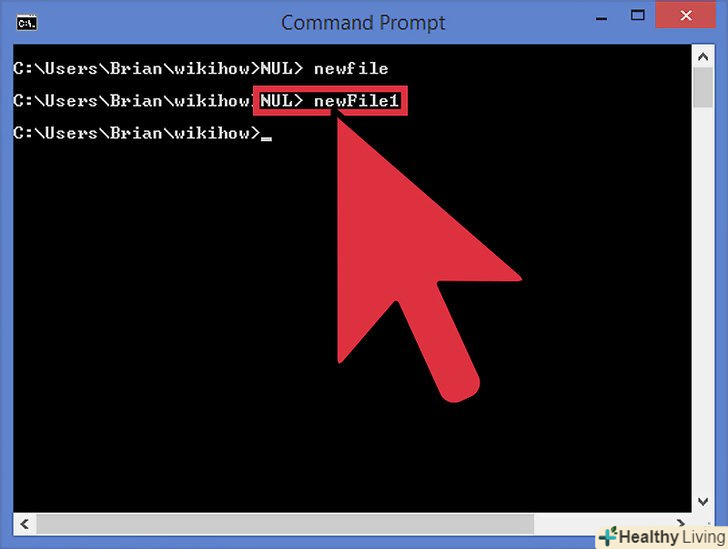 Створіть новий файл. щоб створити новий файл, введіть команду NUL gt;. Введіть nul gt; назву файлу і натисніть Enter, щоб створити новий порожній файл. У наведеному вище прикладі було введено nulgt; newfile.