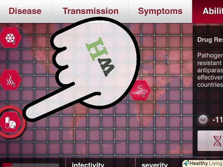 Купуйте ген Drug Resistance.незважаючи на те, що ваша хвороба не може передавати тільки мертвий, вона все одно поширюється повільно. Чому? Відповідь проста-ліки. Люди ними користуються, і ліки вбивають вашу хворобу!- Досить це терпіти! Купуйте ген Drug Resistance 1, що у вкладці Abilities, і покладіть кінець цьому геноциду! Після цього ваша хвороба почне поширюватися швидше, особливо в бідних країнах.