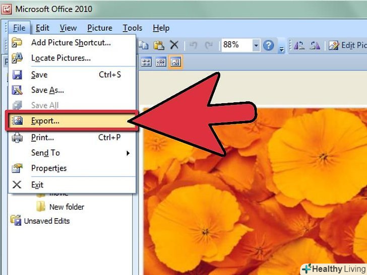 Відкрийте меню "Файл", далі " експорт."у правій частині вікна з'явиться меню. Виберіть папку для збереження зміненого файлу і його нову назву, якщо то необхідно. У полі "Експортувати як" виберіть " GIF Graphics Interchange Format."Ваше нове GIF-зображення буде збережено на комп'ютер.- GIF-файли не можуть похвалитися багатством кольору, зате вони займають найменше пам'яті, що актуально як при роботі з веб-сторінками, так і тоді, коли ваш комп'ютер хронічно страждає від нестачі пам'яті..