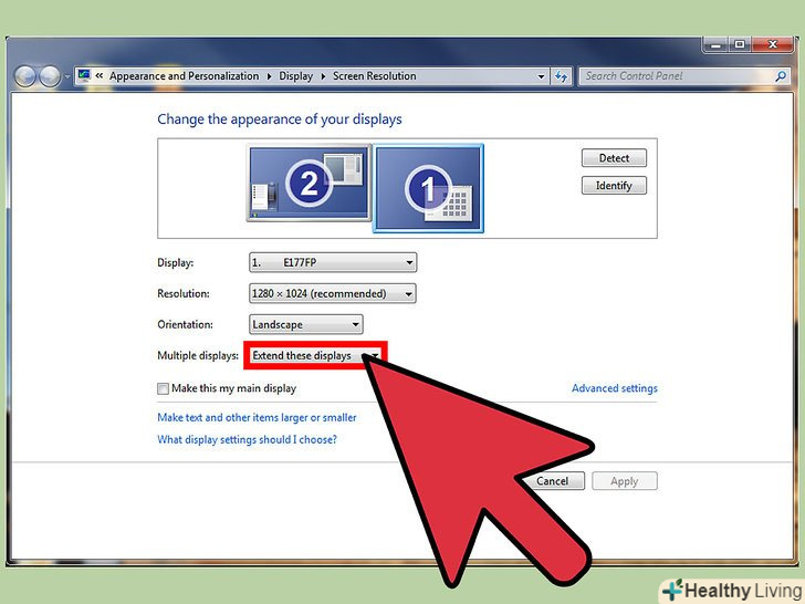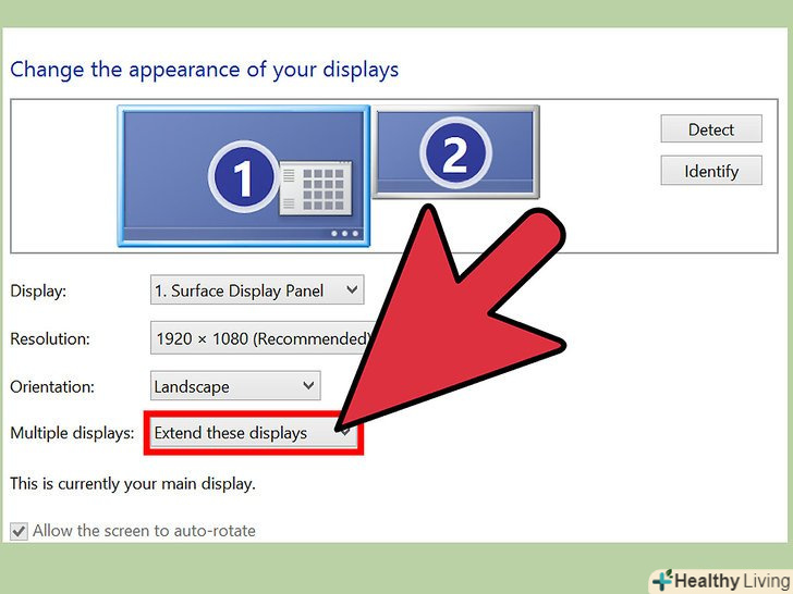 Змініть налаштування екрана на свій розсуд і виберіть спосіб передачі зображення в спадному меню «кілька дисплеїв».наприклад, якщо ви хочете, щоб зображення з першого монітора дублювалося на другому, виберіть «дублювати ці екрани». Якщо ви хочете використовувати обидва екрани, виберіть "розширити ці екрани".