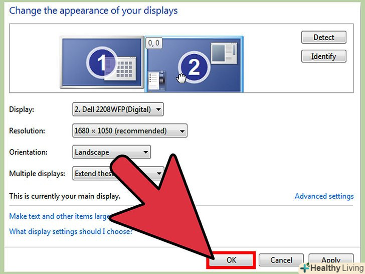 Натисніть "Застосувати«, а потім виберіть»ОК".обидва монітори готові до роботи.[2]