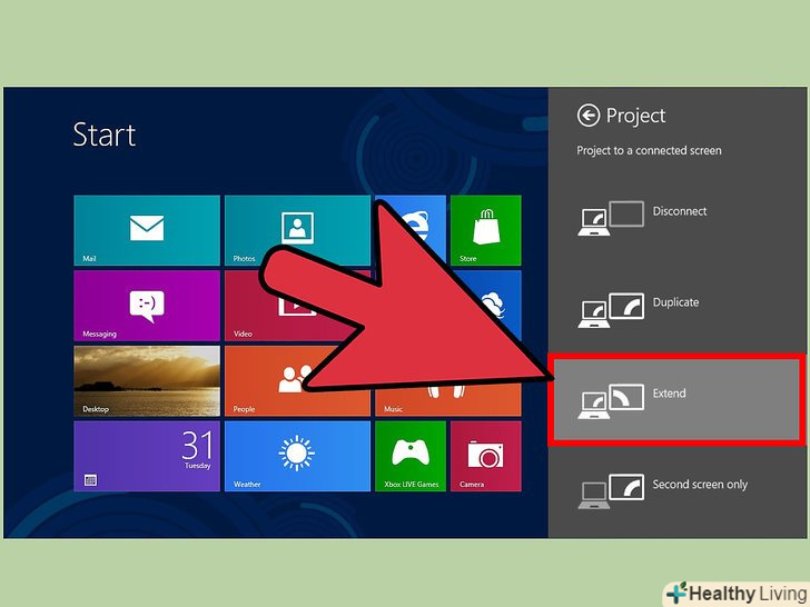 Виберіть спосіб передачі зображення на основі своїх уподобань.наприклад, якщо ви хочете, щоб зображення з першого монітора дублювалося на другому, виберіть «дублювати». Якщо ви хочете відкрити кілька програм і розгорнути їх на обидва монітори, виберіть «розширити».