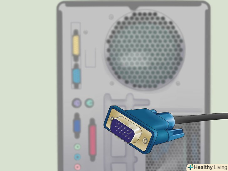Вставте відповідний кабель від другого монітора у вільний порт на комп'ютері.якщо цей порт вже використовується, вам, можливо, доведеться придбати перехідник або спеціальний кабель з роздільником. Наприклад, якщо у вас є два монітори з інтерфейсом DVI і тільки один порт DVI, купіть перехідник DVI-VGA, щоб використовувати вільний порт VGA.