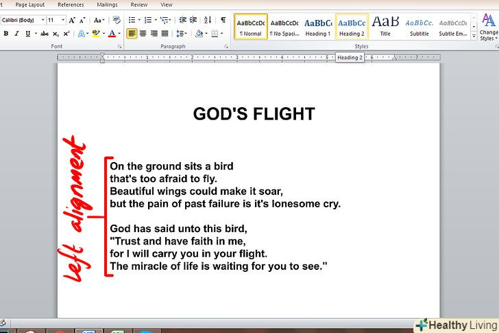 Вирівняйте строфи по лівому краю.вирівняйте кожну строфу в лівій частині сторінки. Текст повинен бути рваним по правому краю, а не вирівняний по ширині.- Кожна строфа відділяється одинарним інтервалом.