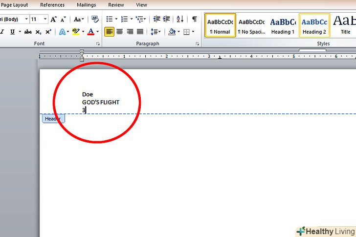 - Прізвище повинна бути вказана в лівому верхньому кутку, назва в центрі, і номер сторінки-в правому верхньому кутку. Всі три частини повинні бути на тому ж рядку.