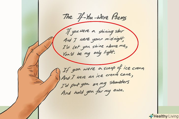 Перепишіть вірш, наскільки це необхідно для поліпшення загальної форми.ви, напевно, знайдете не найкраще поєднання ритму, лінії і загальний порядок у Вашому першому проекті, так що вам треба переписати ваш вірш кілька разів, щоб поліпшити його формату.- Як правило, в перший раз може бути простіше написати свої ідеї інстинктивно і природно.