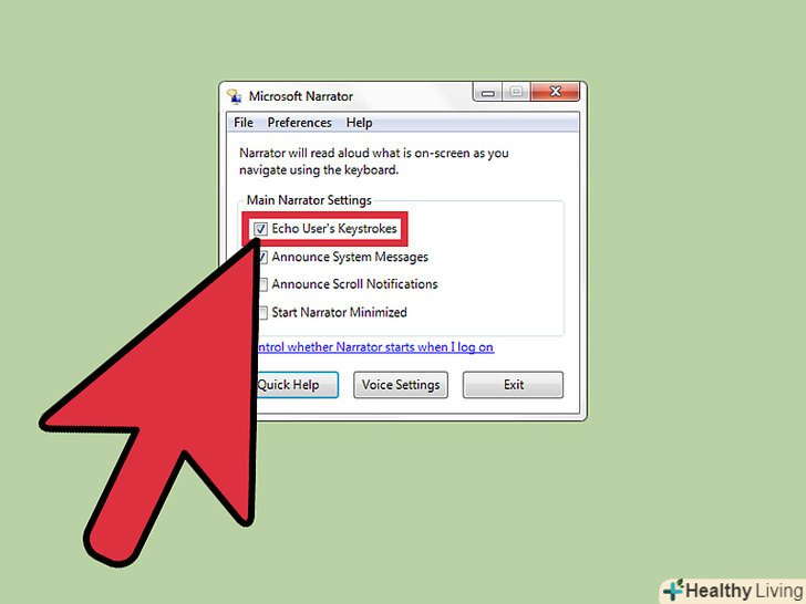 Запустіть утиліту Диктор.Натисніть «Пуск", в рядку пошуку введіть narrator і натисніть Enter. Запуститься Екранний диктор, який озвучує інформацію, що вводиться з клавіатури.