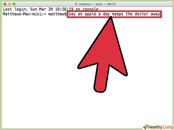 Введіть say, а потім введіть текст, який повинен бути озвучений.