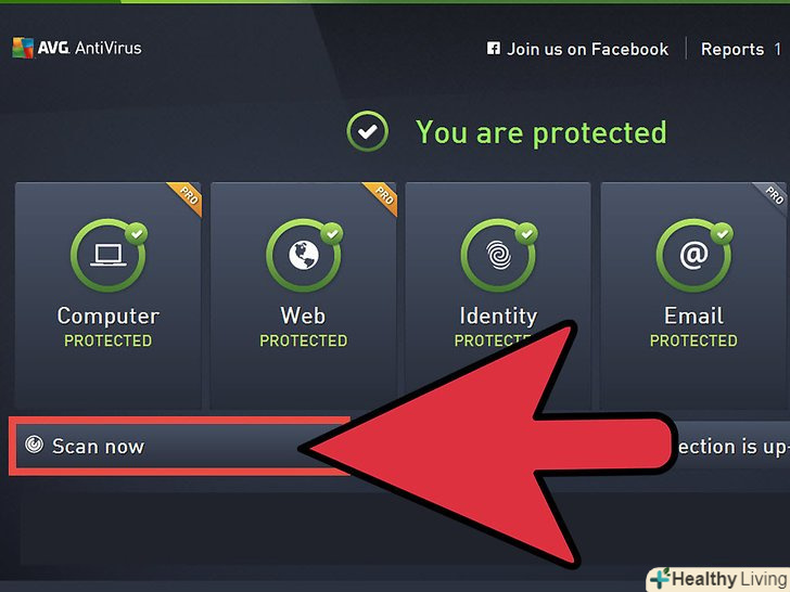 Запустіть антивірусну програму. у вас повинен бути встановлений і працювати антивірус. Якщо його немає, існує кілька безкоштовних програм, таких як AVG або Avast. Скачайте і встановіть одну з цих програм.- Якщо ви не можете отримати доступ до Інтернету через вірусну інфекцію, можливо, буде потрібно завантажити програму на іншому комп'ютері і потім передати її на флеш-накопичувачі.