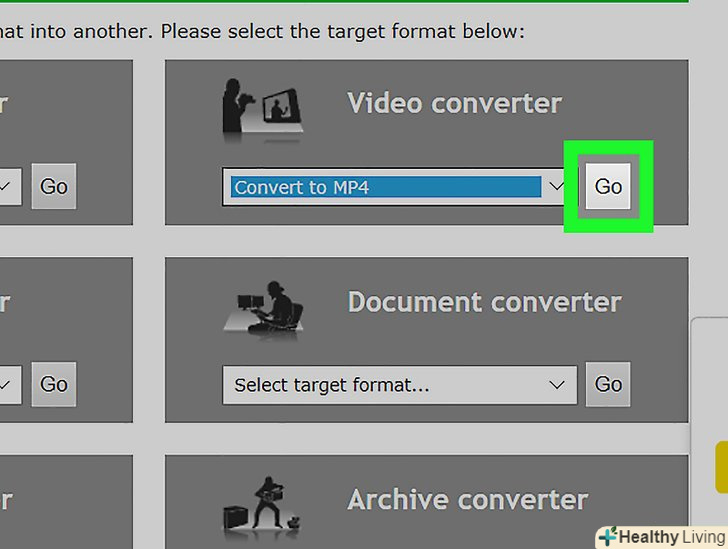 ВиберітьКонвертування в MP4.ця опція знаходиться в меню розділу "відео-конвертер«, який розташований праворуч від розділу»аудіо-конвертер".