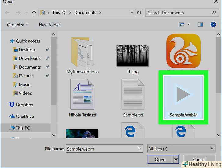 Знайдіть WebM-файл. його розширення — .webm.