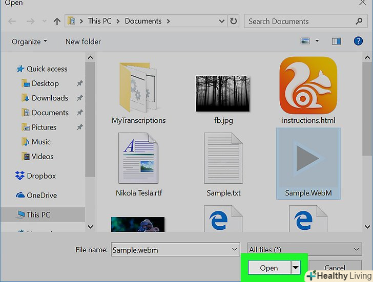 НатиснітьВиберіть файли.це сіра кнопка під «конвертуйте відеофайли у формат MP4". Відкриється вікно, в якому можна вибрати WebM-файл.
