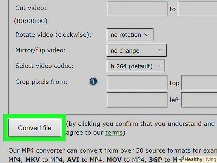 НатиснітьПочати конвертування. ви знайдете цю сіру кнопку в нижній частині сторінки. WebM-файл буде перетворений у формат MP4. Коли конвертація завершиться, вам буде запропоновано зберегти файл на комп'ютері.