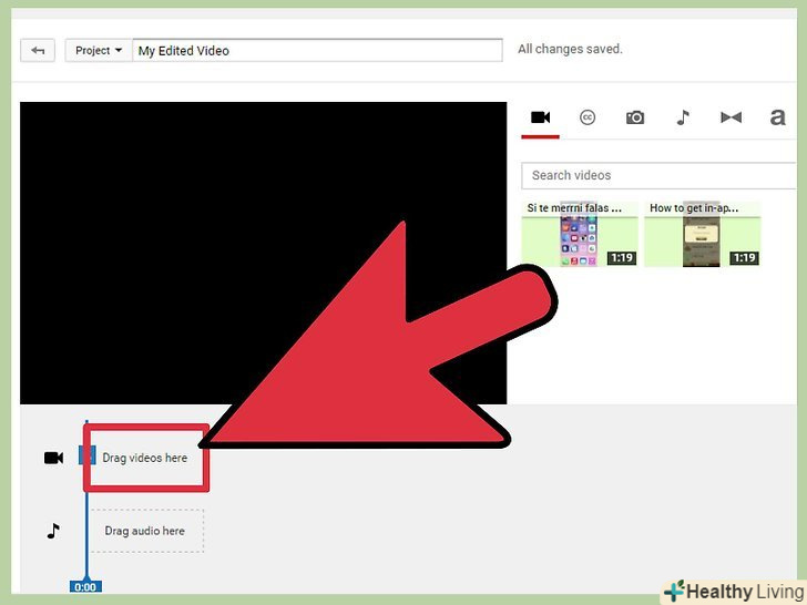 - Щоб об'єднати кілька кліпів, просто перетягніть їх на часову шкалу і розмістіть в потрібному порядку.[5]