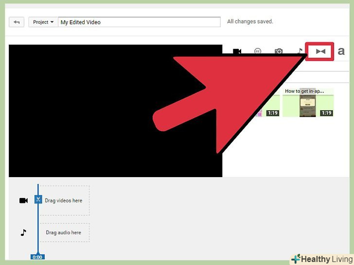 Додайте переходи. щоб додати ефект переходу, виберіть один з варіантів, пропонованих у відповідній вкладці у верхній частині відео редактора. Значок цієї вкладки нагадує краватку.- Перетягніть перехід, який вам сподобався, між двома кліпами. Вам буде доступно 15 різних переходів, але пам'ятайте, що надмірне захоплення ефектами переходів виглядає непрофесійно.