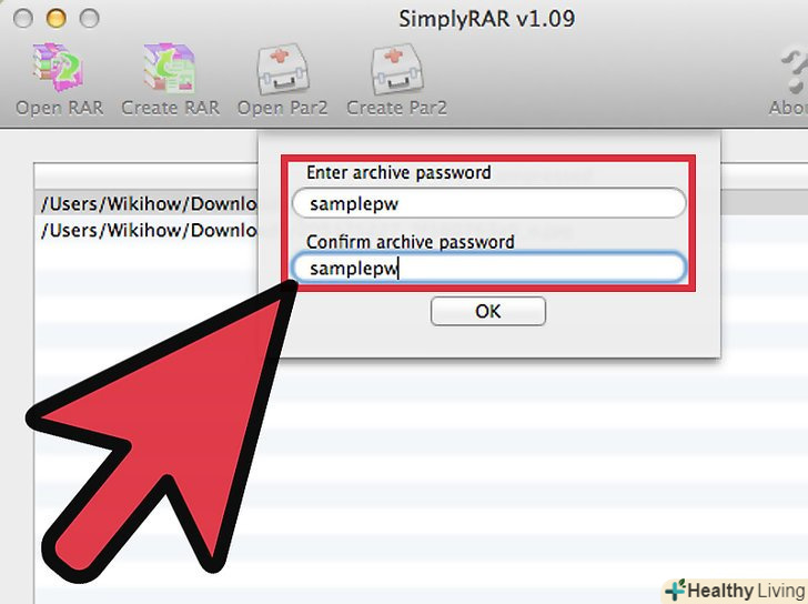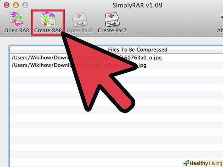 Скачайте і встановіть Simply RAR.це невелика програма-архіватор, за допомогою якої можна створити простий RAR-файл. Ця програма не така функціональна як WinRAR в Windows, оскільки формат RAR і програма WinRAR створені Компанією RARLAB.- У WinRAR є версія для Mac OS X, але вона знаходиться на стадії тестування і з нею можна працювати тільки через термінал. Якщо хочете, скачайте цю версію на сайтіrarlab.com/download.htm. не користуйтеся опцією "Get WinRAR FREE with TrialPay" (безкоштовно встановити WinRAR з TrialPay). Так ви встановите не тільки WinRAR, але і шкідливе програмне забезпечення.