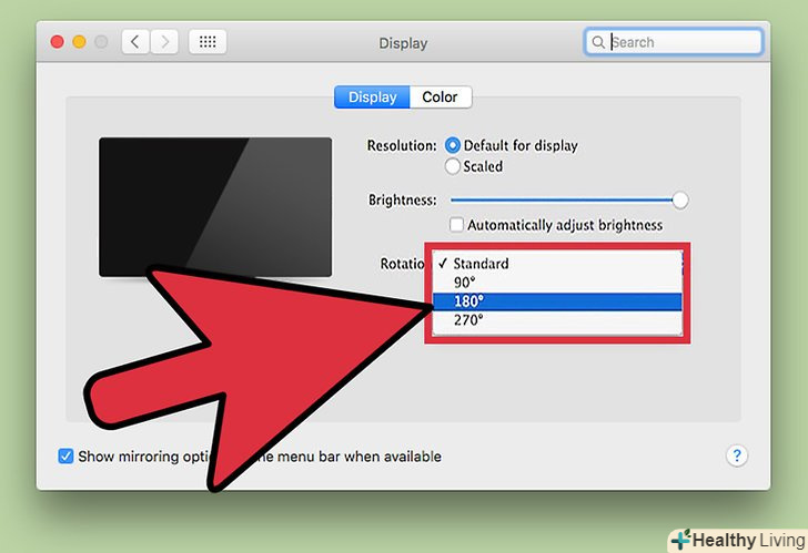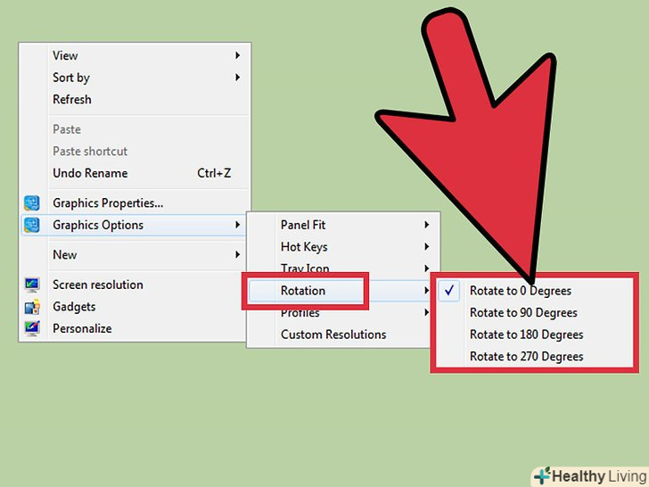 Змініть орієнтацію дисплея. налаштування різних відеокарт влаштовані по-різному, тому вам, швидше за все, доведеться трохи пошукати потрібний розділ. У деяких відеокартах параметр "Поворот екрану" або» орієнтація «знаходиться в меню»Дисплей".- Шукана настройка може також перебувати на вкладці «Додатково».