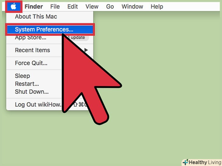 Відкрийте Системні налаштування. натисніть на іконку яблука в лівому верхньому кутку екрану. Виберіть < span class="nowrap" title= " This is not a clickable button; it illustrates the button one should find." style="font-family: Segoe UI, Frutiger, Frutiger Linotype, Dejavu Sans, Helvetica Neue, Arial, sans-serif;letter-spacing:0px;padding:0em .6em; border:1px solid; border-color:#AAA #555 #555 #AAA; -moz-border-radius: 0px; -webkit-border-radius: 0px; border-radius: 0px; background-color: #F2F2F2; background-image: -moz-linear-gradient(top, #FCFCFC, #E0E0E0); background-image:-o-linear-gradient(top, #FCFCFC, #E0E0E0); background-image:-webkit-linear-gradient(top, #FCFCFC, #E0E0E0); background-image: linear-gradient(top, #FCFCFC, #E0E0E0);">Системні налаштування з меню, що випадає.- Якщо Системні налаштування вже були відкриті, закрийте їх і знову відкрийте при затиснутих клавішах.