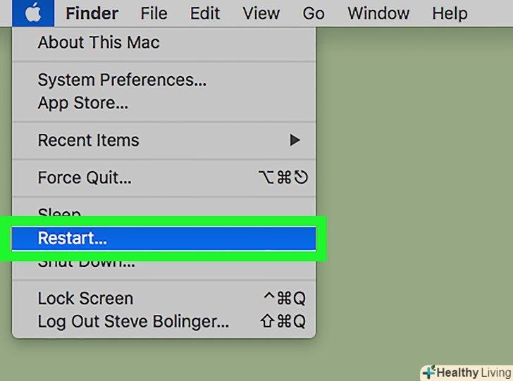 Перезавантажте комп'ютер. коли ви відключите програми в автозавантаженні, перезавантажте комп'ютер, щоб звільнити ОЗУ:- Відкрийте меню Apple;