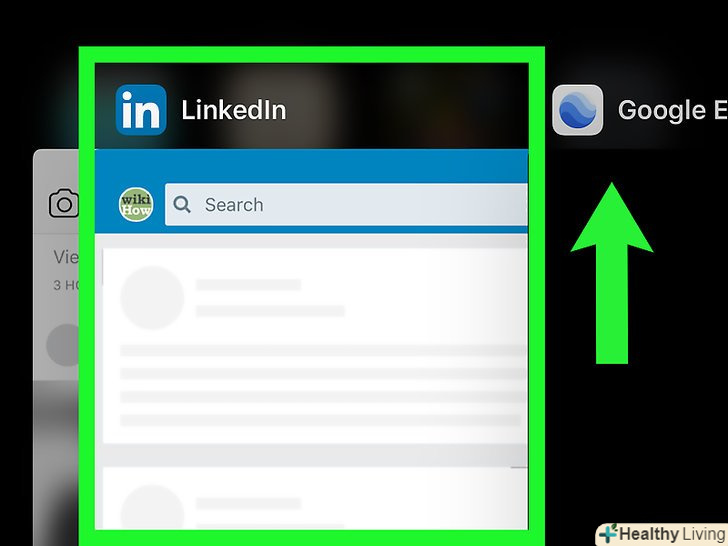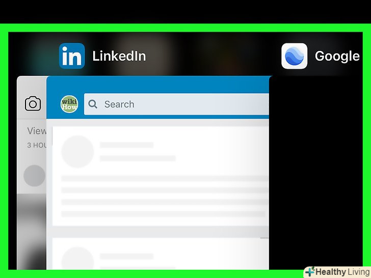 Двічі натисніть кнопку "Додому".відкриється список запущених додатків.- На iPhone X проведіть з нижньої частини до центру екрану і не прибирайте палець до тих пір, поки не відкриється список запущених додатків.