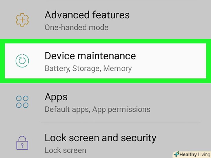 НатиснітьDevice maintenance (обслуговування пристрою).ця опція знаходиться в нижній частині екрана. Запуститься додаток Device maintenance.