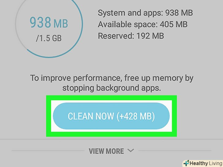 НатиснітьCLEAN NOW (Очистити). Ця опція знаходиться посередині сторінки. Почнеться очищення ОЗУ Samsung Galaxy.