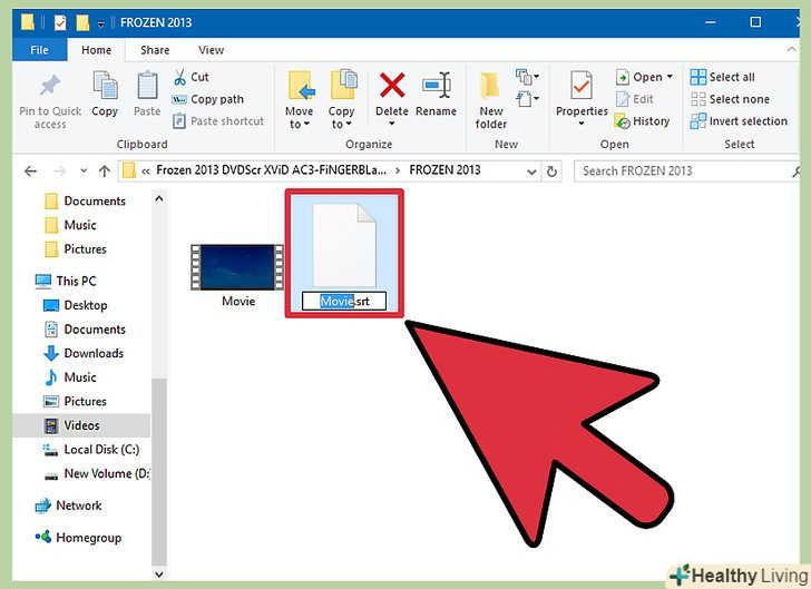 Перейменуйте файл з субтитрами так, щоб він був ідентичний файлу з фільмом. якщо файл з фільмом називається " Самыйлучшийфільм.AVI", файл з субтитрами повинен називатися " Самыйлучшийфільм.SRT». Знайдіть файл з субтитрами там, куди ви його зберегли (як правило, це папка " завантаження») і перейменуйте його. Файл з розширенням .SRT повинен називатися так само, як і файл з фільмом.[3]