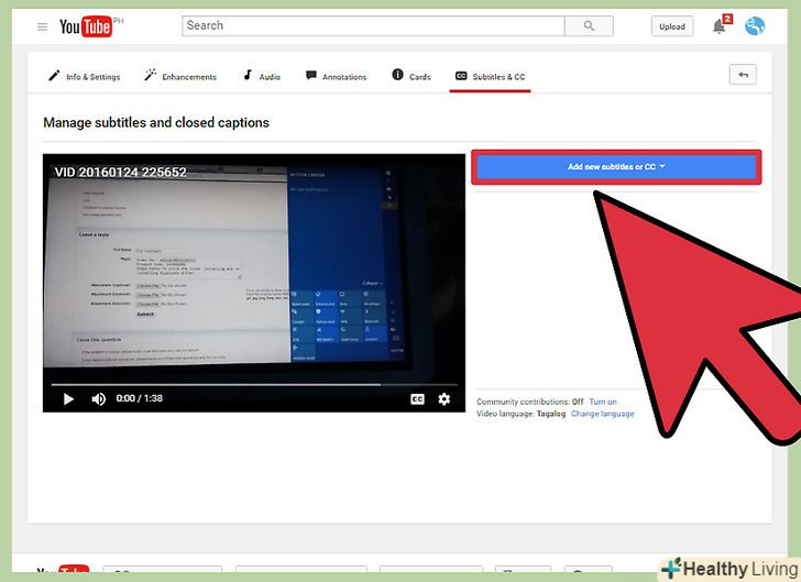 Вставте .SRT файл у фільм, який ви завантажуєте на YouTube.для цього натисніть на кнопку "субтитри" під час завантаження відео. Потім натисніть на "Додати нові субтитри" і виберіть файл з розширенням .SRT. Переконайтеся, що вибрали "субтитри«, а не»Переклад". Натисніть на кнопку " СС " під час перегляду відео, щоб включити субтитри.