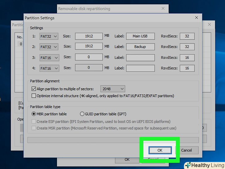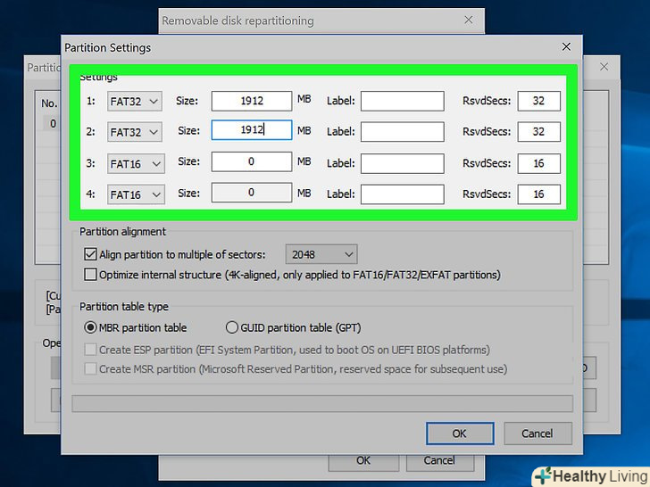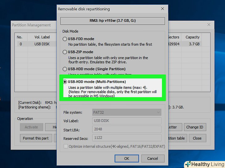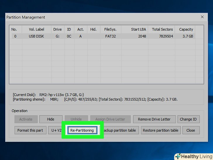 Натисніть " Re-Partitioning "(створити розділи).відкриється вікно "Removable disk repartitioning" (створення розділів на знімному диску).