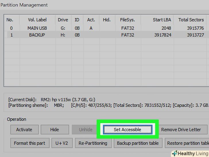 - Натисніть " Set Accessible "(зробити активним). Через мить активний розділ буде змінений, і в Windows відобразиться Новий Розділ.