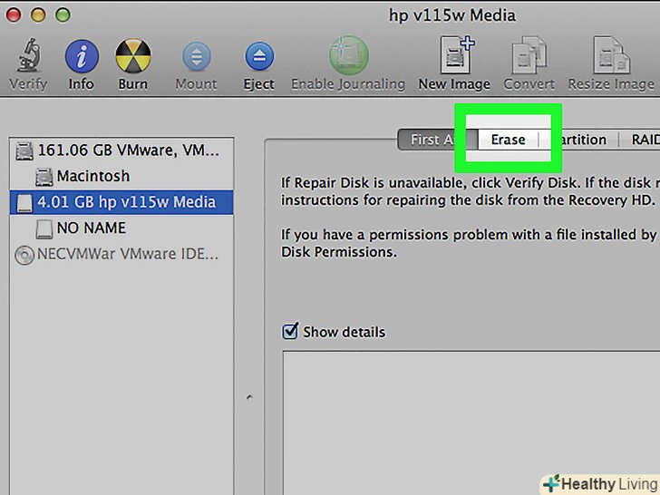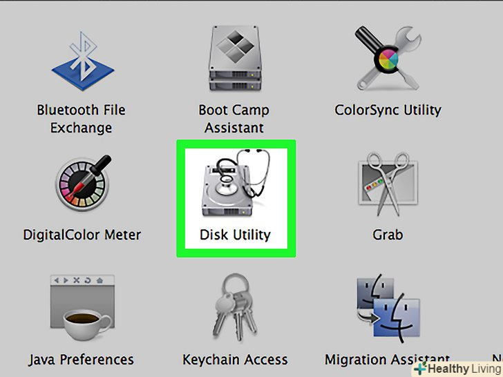 Відкрийте дискову утиліту. вона знаходиться в папці «Додатки» / «утиліти".