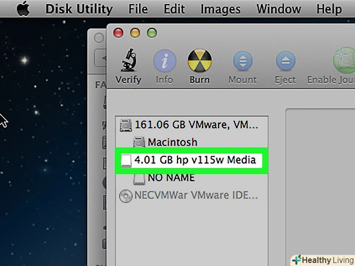 В меню (у верхньому правому куті) виберіть флешку.визначте флешку по її ємності. Переконайтеся, що не вибрано жорсткий диск комп'ютера, щоб не втратити всі дані, що зберігаються на ньому.