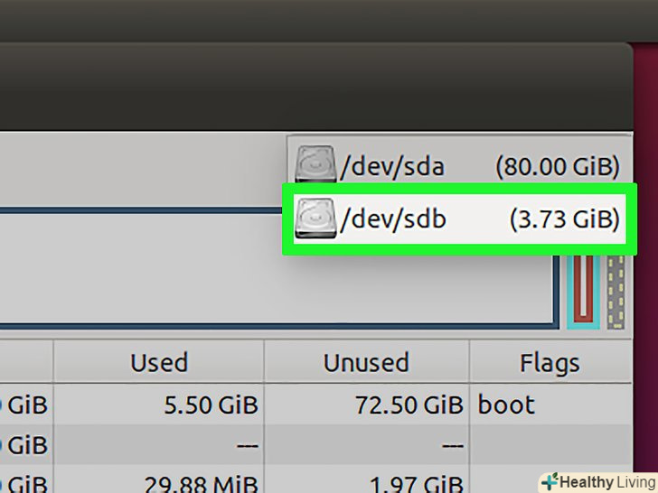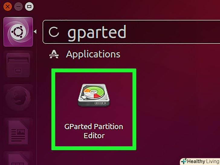 Запустіть програму Gparted Partition Editor.як приклад тут розглядається Ubuntu, яка поставляється з попередньо встановленою програмою GParted Partition Editor. Якщо у вашому дистрибутиві Linux програми GParted немає, скачайте її на сайті gparted.org / або через менеджер пакетів вашого дистрибутива.- В Ubuntu відкрийте головне меню (Dash) і введіть GParted; або натисніть «Система» – «адміністрування» – «GParted».