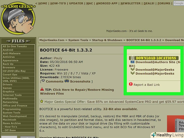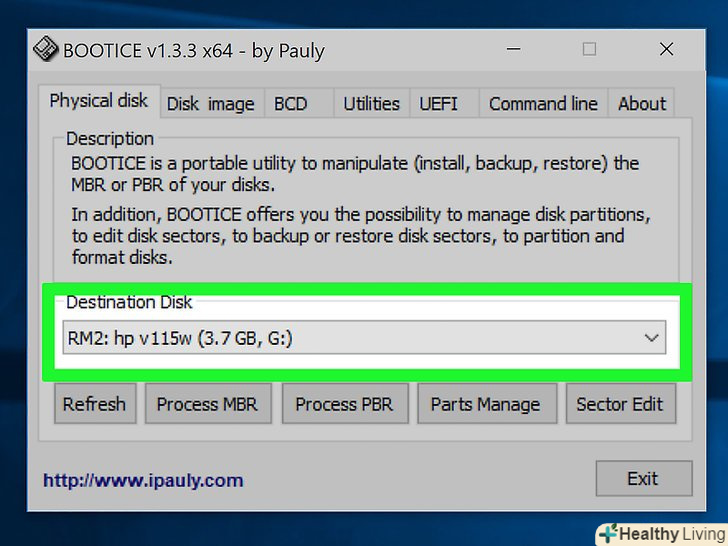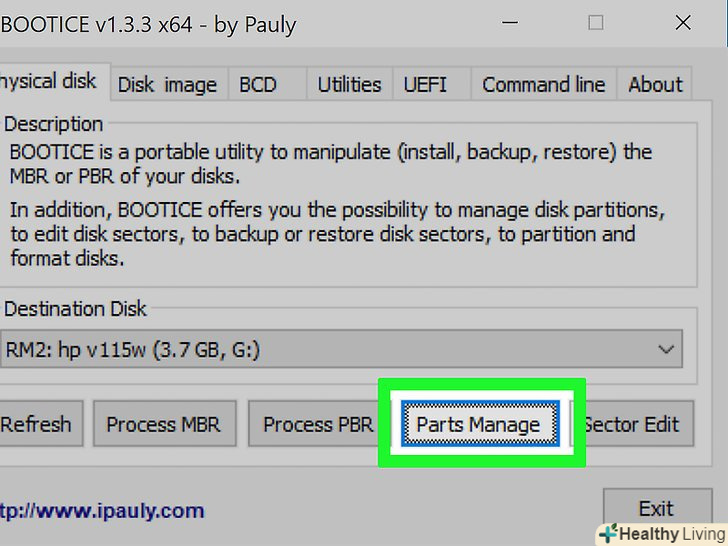 Скачайте Bootice.за допомогою цієї програми на флешці можна створити кілька розділів, а також вказати активний розділ, з яким працює Windows.- Скачайте Bootice на сайтіmajorgeeks.com/files/details/bootice.html.
