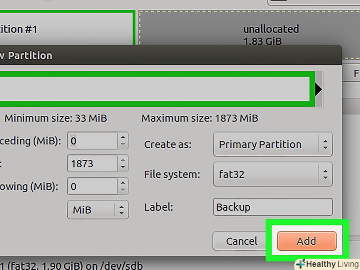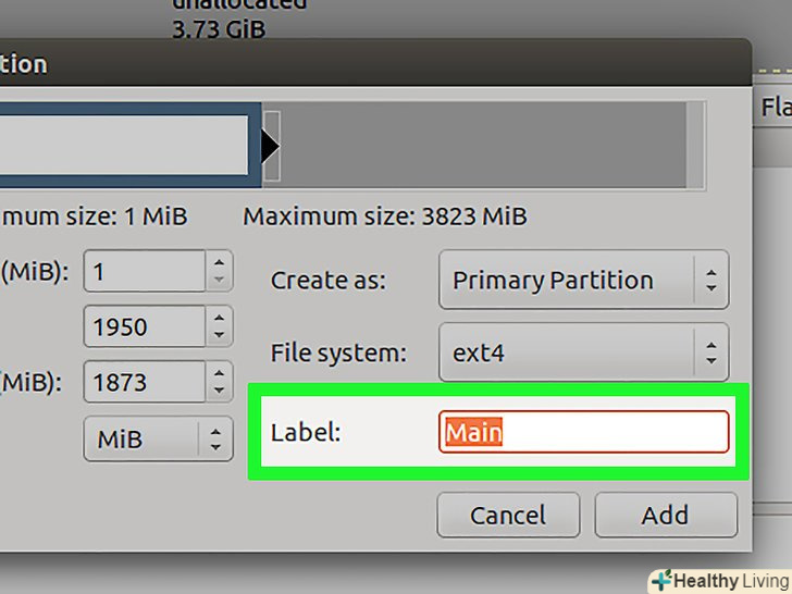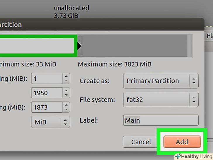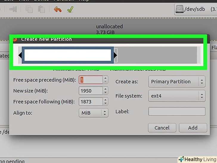 Вкажіть розмір першого розділу.зробіть це за допомогою повзунка або введіть числа у відповідних полях. Не забудьте залишити місце для створення додаткових розділів.