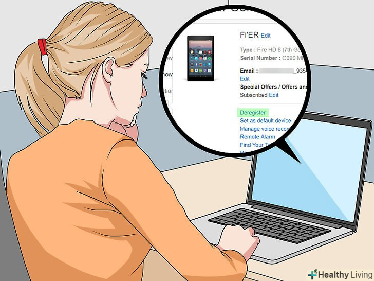 - В результаті цих дій пристрій Kindle буде відв'язано від облікового запису Amazon. Всі придбані книги будуть стерті з пристрою. Ви більше не зможете завантажувати або купувати контент, поки Kindle не буде прив'язаний до іншого облікового запису Amazon.[13]
