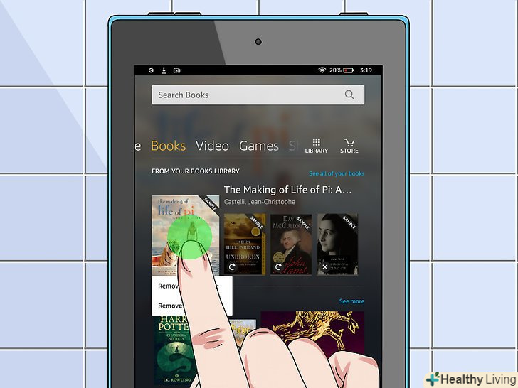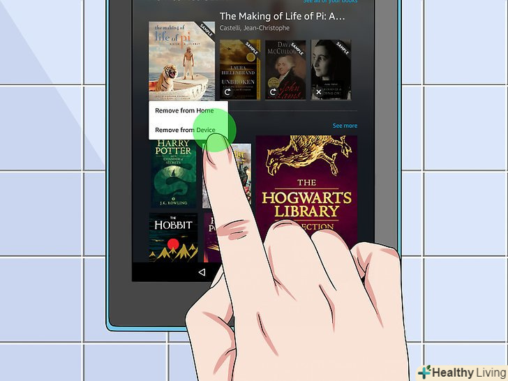 Торкніться і утримуйте натискання на книзі, щоб видалити її.знайшовши потрібну книгу, торкніться її пальцем і не відпускайте протягом декількох секунд, поки на екрані не з'явиться контекстне меню. Серед різних опцій меню також буде і» Remove from device " (видалити з пристрою).[7]- Виберіть цю опцію зі списку, торкнувшись її. Торкніться "Remove from device", щоб видалити книгу з пристрою Kindle.