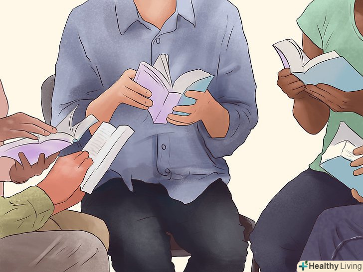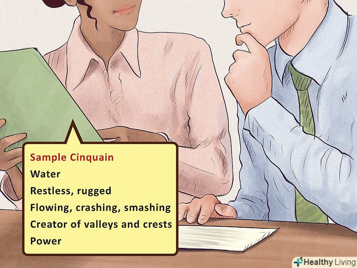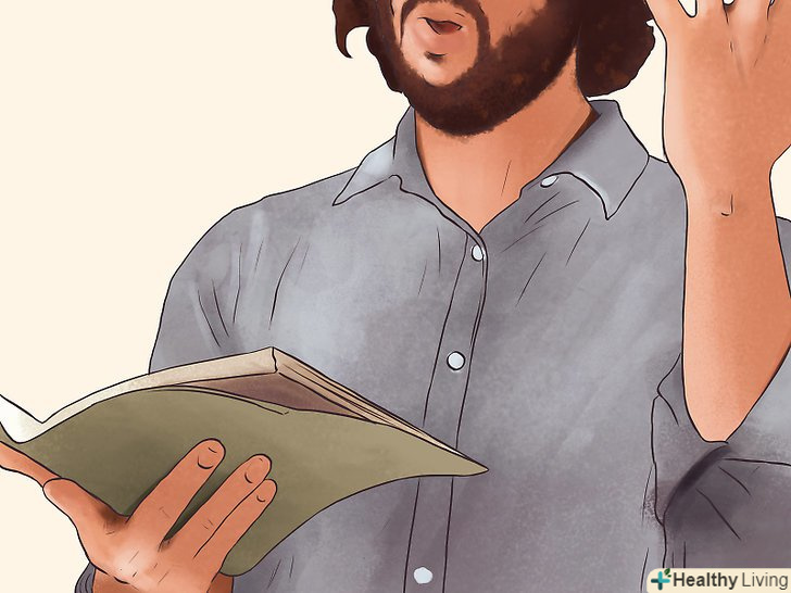 Обговоріть вірш у поетичному гуртку.якщо ви відвідуєте поетичний гурток, то покажіть вірш своїм друзям і запитайте про враження. Запишіться в гурток, щоб розбиратися в поетичній теорії, або організуйте власну групу любителів поезії. Обговорюйте вірші все разом, щоб помічати якомога більше деталей і обмінюватися різними тлумаченнями одного тексту.[16]- Запропонуйте друзям прочитати вірш, потім висловіть власну думку, думки і враження, щоб почати дискусію. Діліться ідеями і здогадками, аналізуйте зміст і форму вірша.