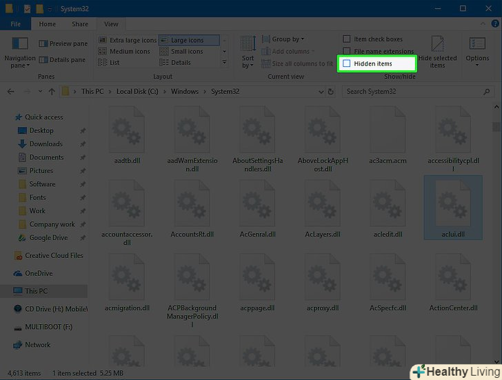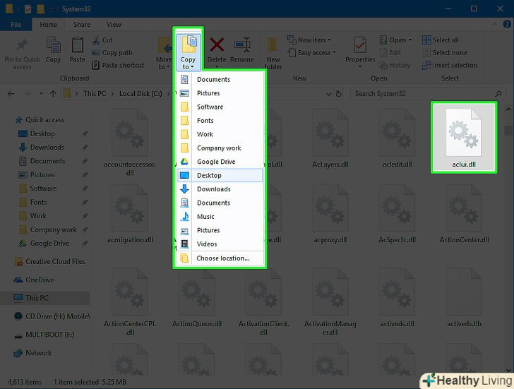 Створіть копію файлу DLL.зробіть це, оскільки файли DLL мають вирішальне значення для нормальної роботи системи або Програми.- Клацніть по потрібному DLL-файлу.