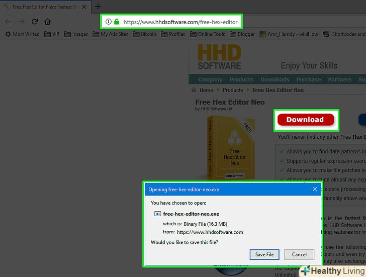 Скачайте інсталяційний файл Hex Editor. перейдіть на сторінку https://www.hhdsoftware.com/free-hex-editor у веб-браузері комп'ютера, а потім натисніть " Download "(Завантажити) у верхній частині сторінки.