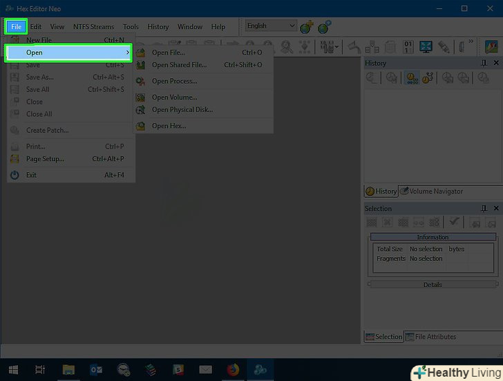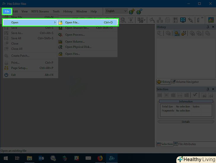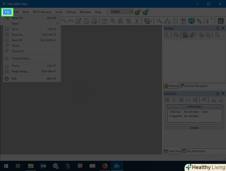 Клацніть поFile (Файл).ця опція знаходиться у верхньому лівому куті вікна Hex Editor. Розкриється меню.