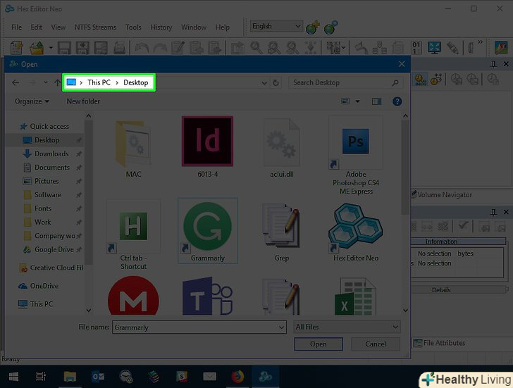 Встановіть програму Hex Editor.двічі клацніть по завантаженому файлу "free-hex-editor-neo", а потім дотримуйтесь інструкцій на екрані. Коли установка завершиться, програма відкриється автоматично.- Якщо Hex Editor не відкрився, двічі клацніть по синьому ярлику "Hex Editor Neo" на робочому столі.