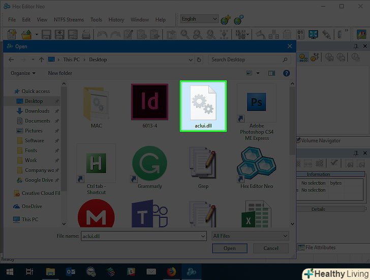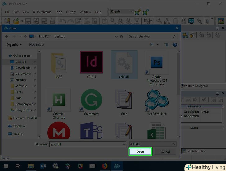 НатиснітьВідкрити.ця кнопка знаходиться в нижньому правому куті вікна. DLL-файл відкриється в Hex Editor.
