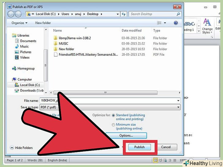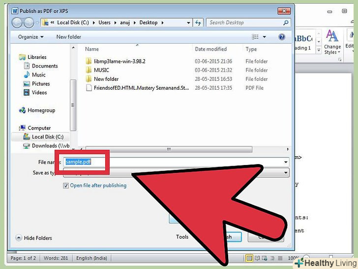 Введіть ім'я файлу і виберіть папку для його збереження. за замовчуванням ІМ'Я PDF-файлу буде збігатися з ім'ям вихідного файлу.