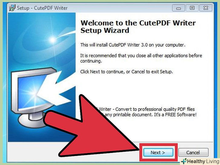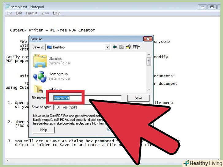 Скачайте безкоштовну програму Cutepdf Writer. вона встановить віртуальний принтер на комп'ютері. Цей принтер нічого не друкує - він дозволяє створювати PDF-файли. Використовуйте цей принтер у блокноті, щоб зберігати TXT-файли у форматі PDF.- Відкрийте веб-браузер і перейдіть на сторінку cutepdf.com/products/cutepdf/writer.asp . Натисніть " Free Download "(скачати безкоштовно) і» Free Converter " (безкоштовний конвертер). Будуть завантажені дві програми, які знадобляться, щоб встановити Cutepdf Writer.